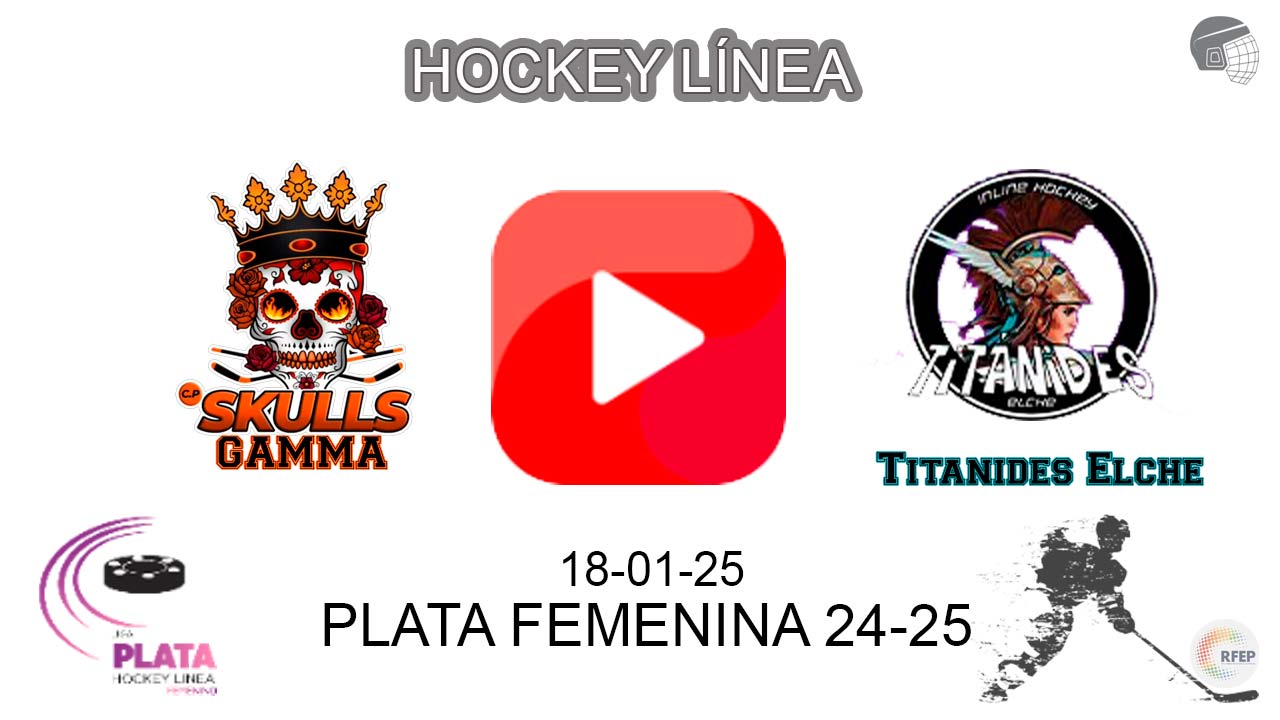 Partido femenino de hockey lĂnea entre los equipos đ Skulls Gamma Vs Titanides Elche, correspondiente a la jornada 1 de la liga PLATA FEMENINA de la temporada 24/25, que se disputa el sĂĄbado 18 de enero de 2025 a las 12:30.